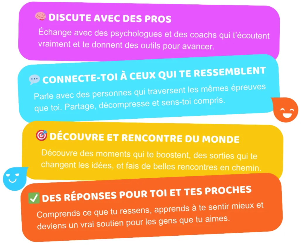 L'application offre un espace sécurisé et accessible où chacun peut trouver le soutien nécessaire, qu'il s'agisse d'une écoute attentive, d'un accompagnement professionnel, ou d'opportunités pour se reconnecter aux autres. Grâce à ses multiples fonctionnalités, Agora s’adapte à chaque utilisateur, favorisant une approche progressive et personnalisée pour retrouver une vie sociale épanouie.
